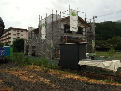 8月ですね西渕工務店のこと2014年 08月 02日 (土) 大洲市平野町『日さしの家』 左官さん待ちです。今週になって急に天気が崩れがちです。 外仕事は天気に左右されるので難しい。 プロポーションの良い外観になりそう。 大工さんの道具小屋というのを各現場に持っていっているんですが、ちょうどいいところに写って邪魔… 綺麗な写真はお預けです。 « 次の記事へ一覧へ戻る前の記事へ »