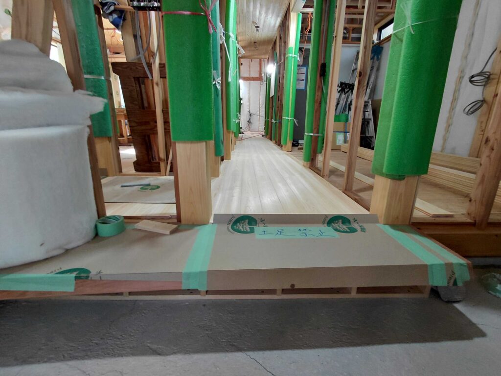 式台未分類砥部の家2025年 10月 30日 (木)砥部町「砥部の家」も着々と進んでいまして、大工工事真っ最中です。 フローリングを張ってますね。 写真手前が玄関なのですが、サクラの式台を取り付けました。 桜とか欅とか広葉樹は目が込んでいて、赤くてきれいで硬いのですがなかなか取れないのでとんでもないお値段するのでここぞという場所に使います。 一覧へ戻る前の記事へ »