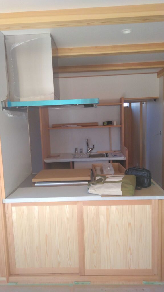 造作のⅡ型キッチンがコンパクトに納まっております。