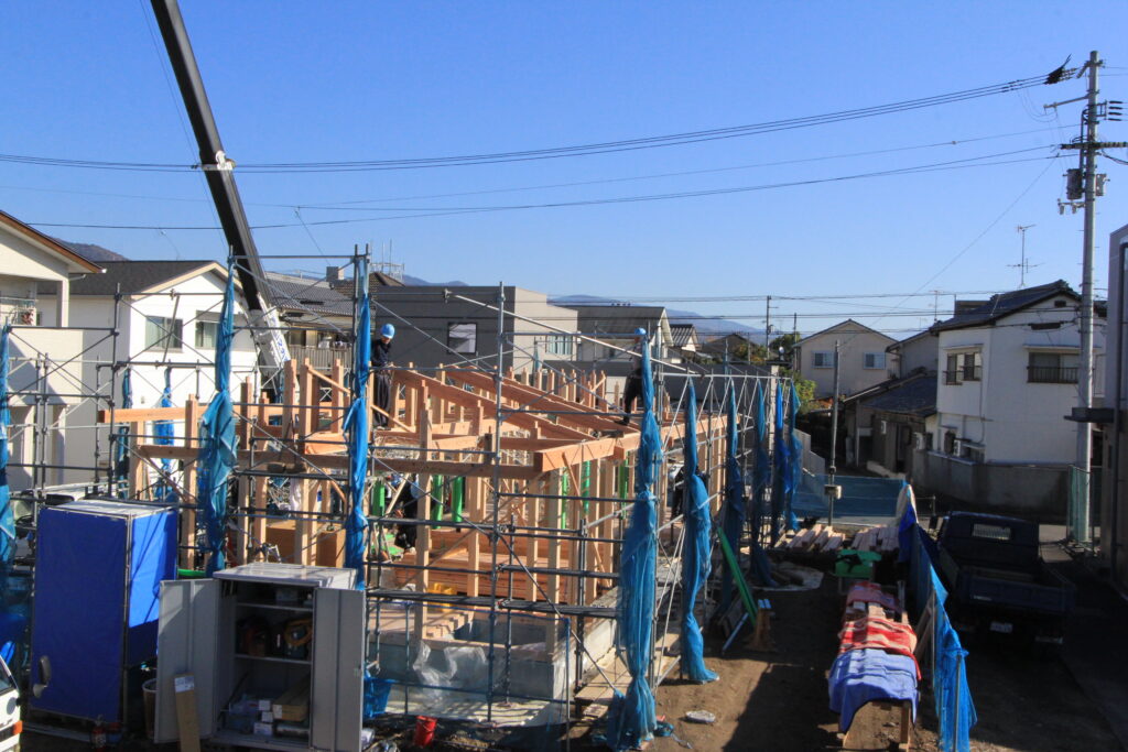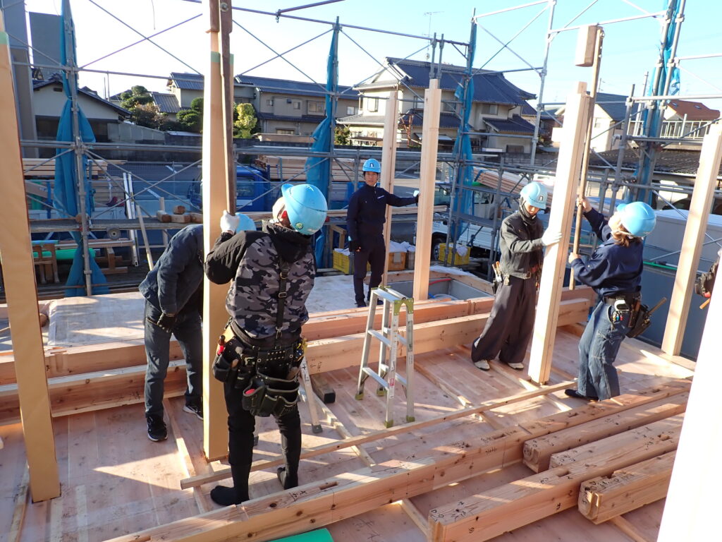 本日松山市来住町「光あふれる、風薫る家」の上棟日でした。
