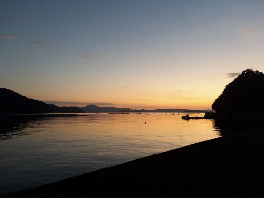 昨日は仕事終わりに宇和島へ。友人宅の前で見た夕方の海。