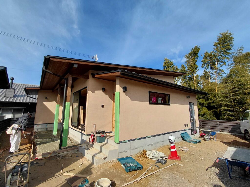足場解体緑ヶ丘の家2025年 12月 12日 (金) 内子町「緑ヶ丘の家」 外部足場が解体されました~! 外壁はそとん壁なのですが、久々に色付き。 ブラウン色です。外部木部も塗装して、最近の工務店では珍しい色合いかもしれません! 来年に完成見学会を開催予定ですのでお楽しみにー « 次の記事へ一覧へ戻る前の記事へ »