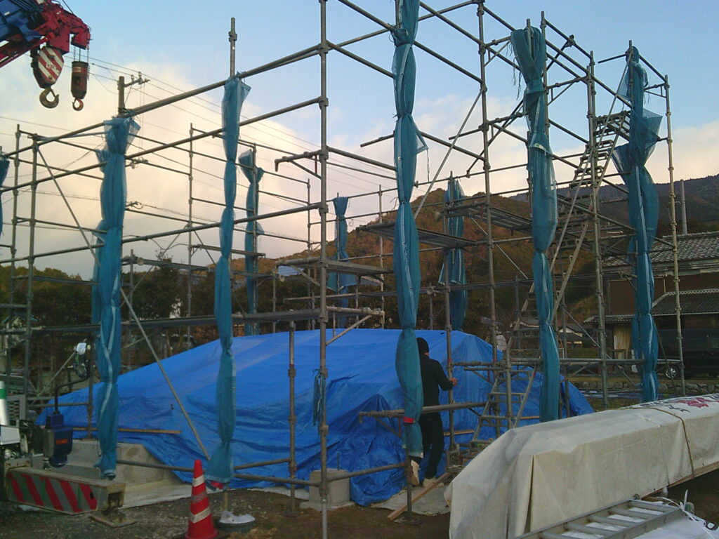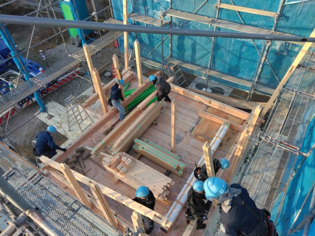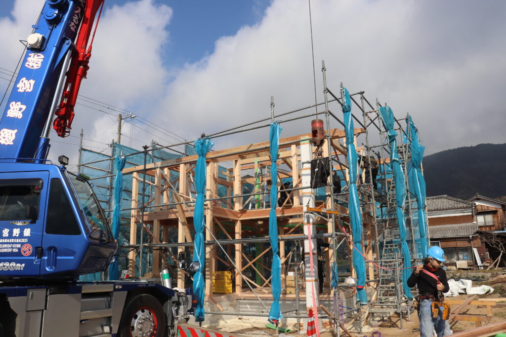 宇和島市「(仮)三間の家」の上棟日を迎えました。