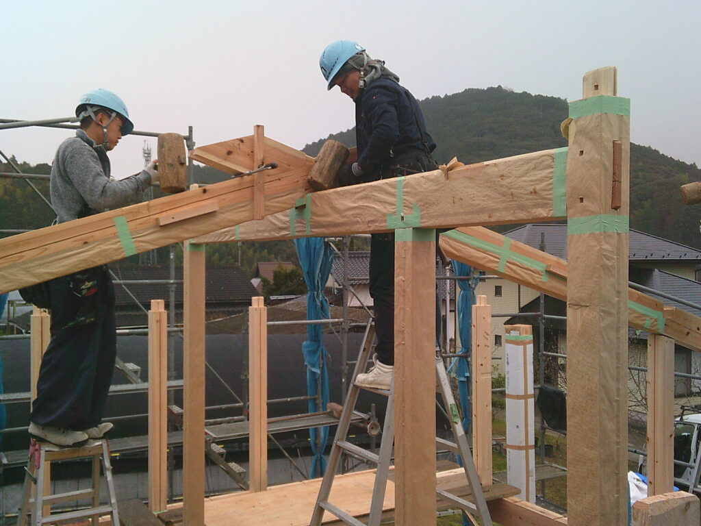 開きながら納める…複雑に組み合わさって強固な軸組が生まれます。