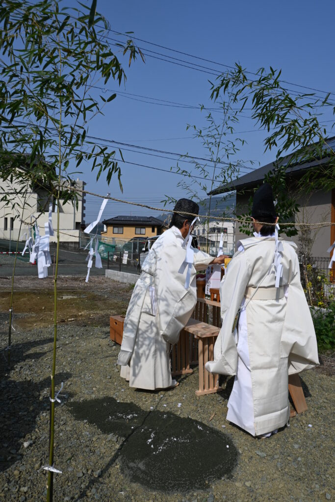 降神の儀をもって、この土地の神様をお招きし、祝詞奏上を行いこの土地に建物を建てることを報告していきます。