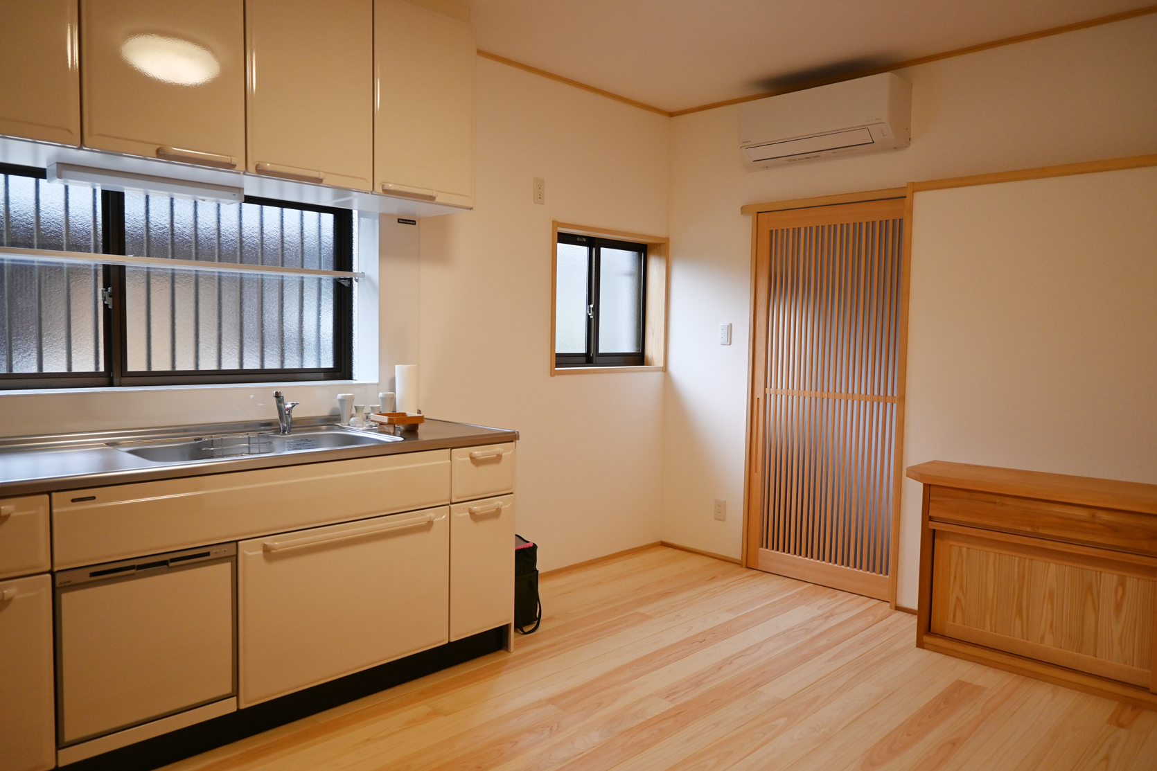 お引き渡しリフォーム2026年 04月 15日 (水)砥部町にて行っておりましたリフォーム工事のお引き渡しさせていただきました。 ダイニングキッチンの床を桧に。 システムキッチンを取り換えました。 洗面化粧台も大工さんで造作。 三面鏡です。 新しい暮らしが素晴らしいものになりますよう、お祈り申し上げます。 誠におめでとうございます。 « 次の記事へ一覧へ戻る前の記事へ »