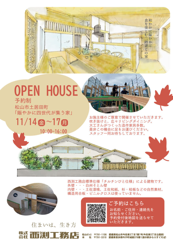 大屋根を利用した吹き抜けのある二階建ての家です。