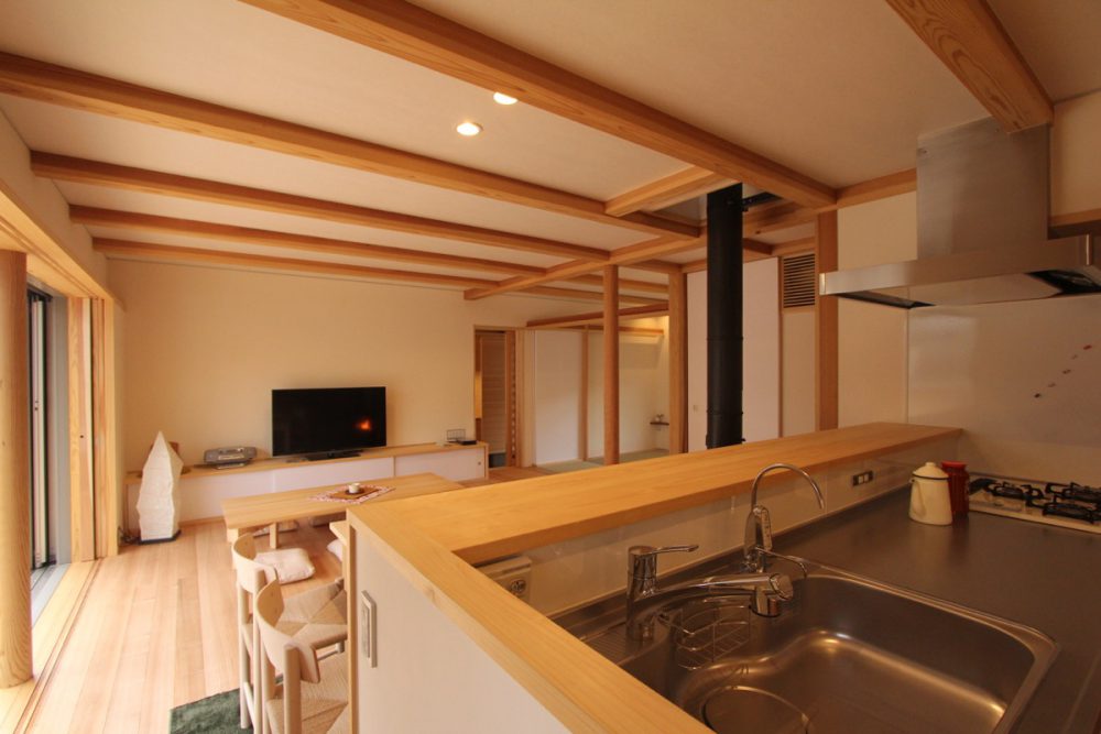 松山の家設計:田中敏溥建築設計事務所二階建て塗り壁板金葺き薪ストーブ長期優良住宅2016年竣工。 庭とウッドデッキ、リビングが繋がり一体となり、なんともいえない心地よさを感じることができる。 障子とサッシは全開口することができる。 飽きの来ない普遍性のあるデザイン。 ※画像をクリックすると拡大表示します 完成までの施工状況はコチラから« 次の記事へ一覧へ戻る前の記事へ »