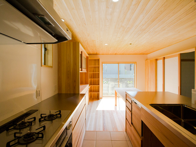 仕上げ材を自然素材に。Ⅱ型の造作キッチンに…。