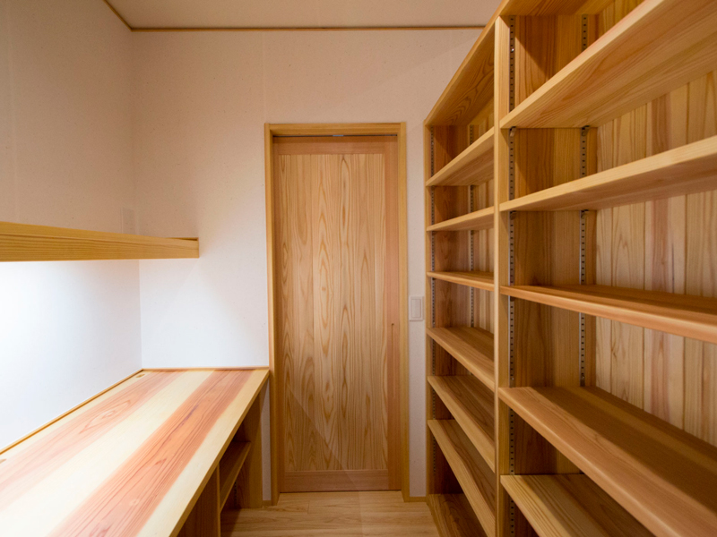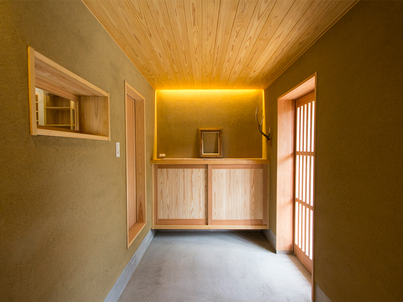 大きな土間リビングと書斎がある家。LDKと玄関は木摺り下地中塗り仕上げ。